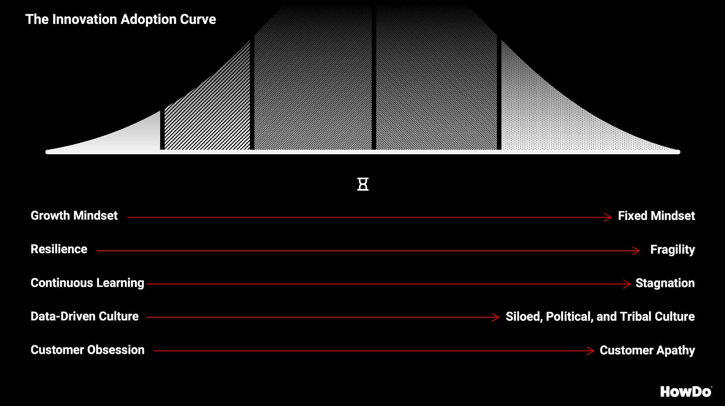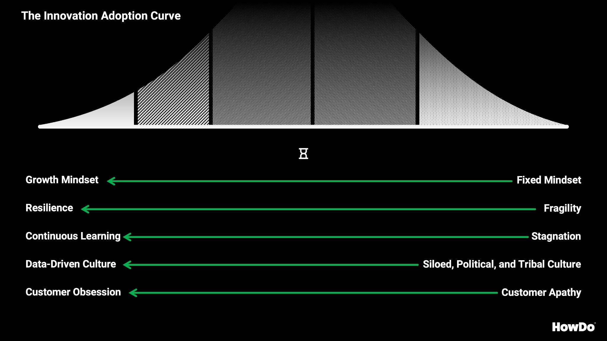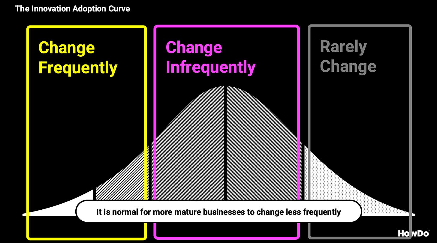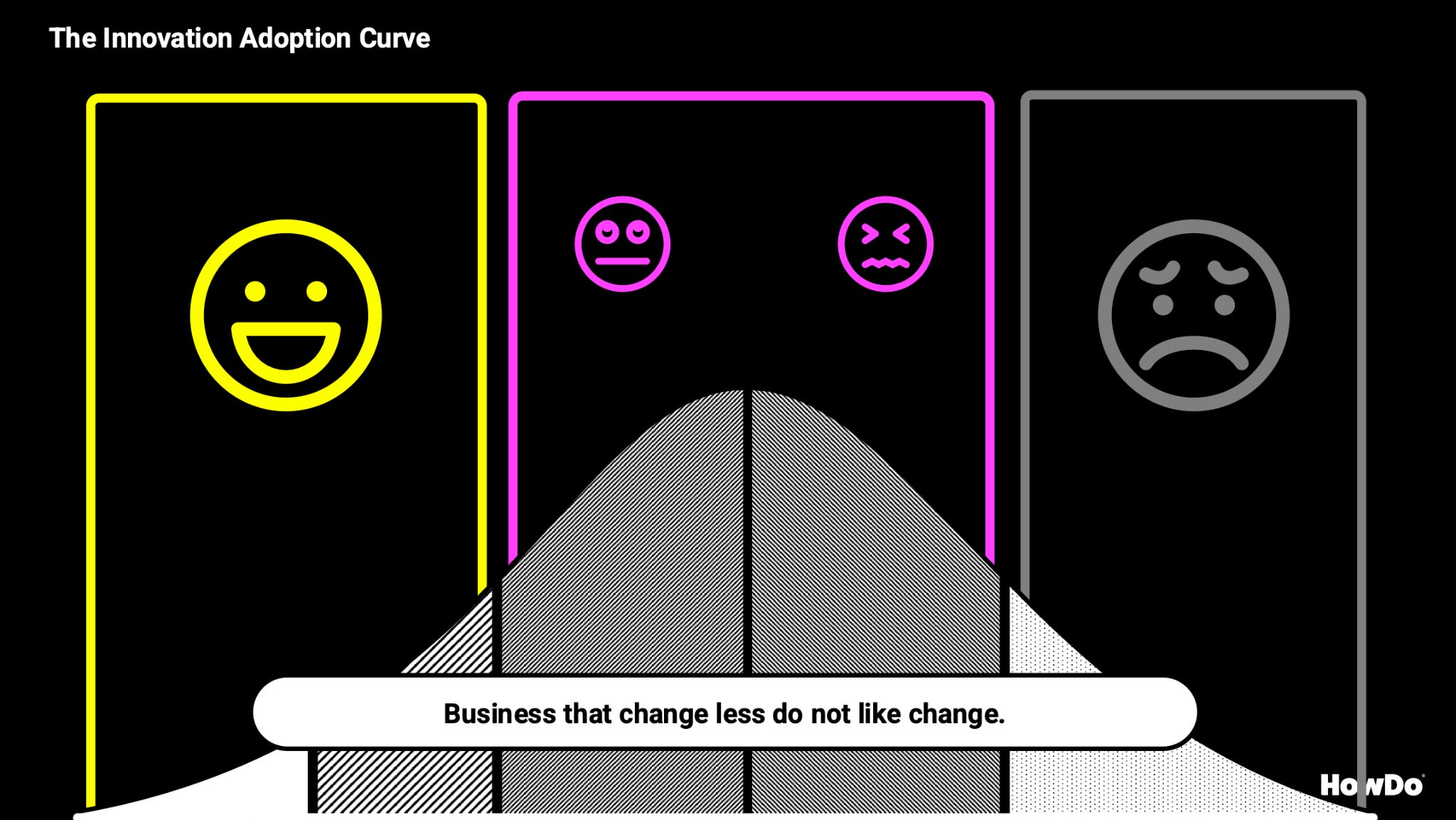 This curve is usually used to describe customers. But it also describes companies. Whole organizations sit somewhere on this curve based on their relationship to change.